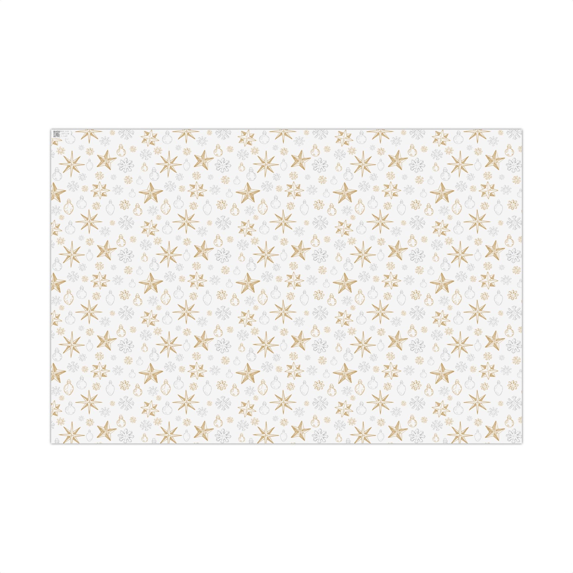 This paper is the definitive traditional choice for those seeking a luxurious, high-end look. It features a clean, crisp pattern of iconic ornaments, snowflakes, and stars rendered exclusively in shimmering silver and gold metallics against a pristine white background. The Brightest Stars are Under the Tree This Year.