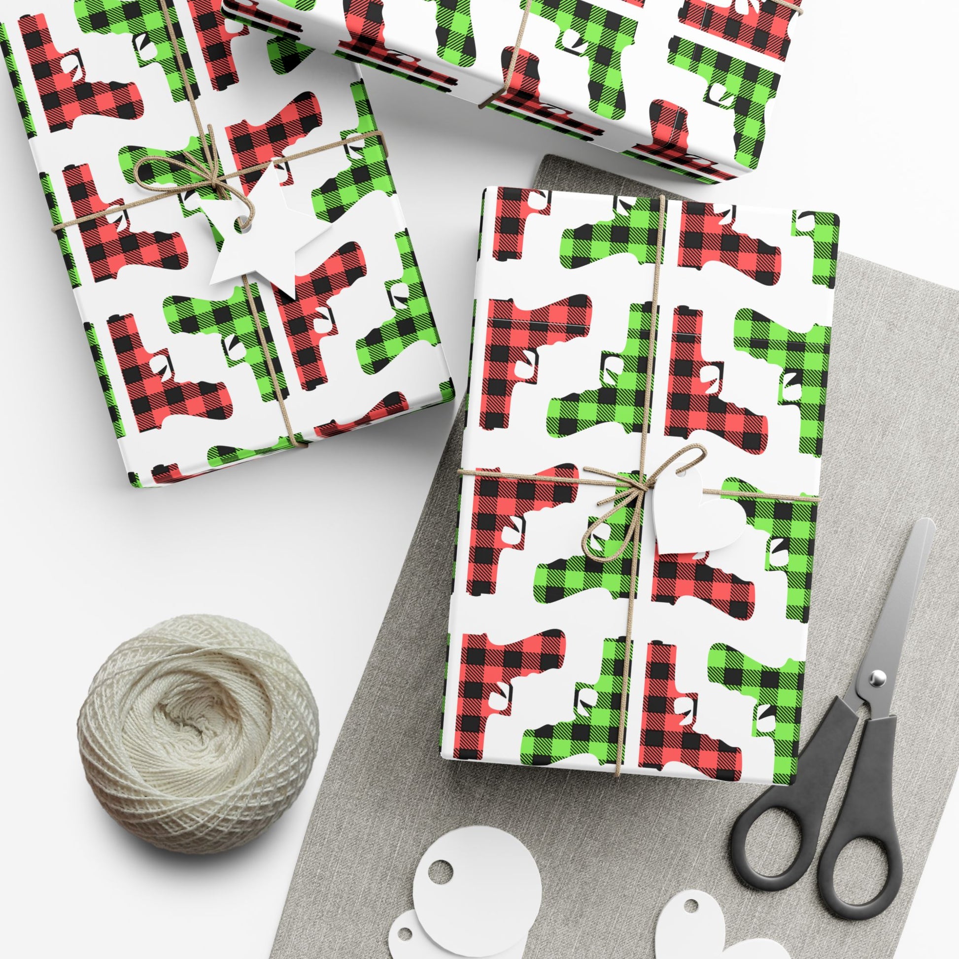 ADORN© your gifts with a classic look from a distance and a tactical surprise up close! Our Pistol Buffalo Plaid Wrapping Paper is the definitive choice for the everyday carry person on your list or anyone who appreciates a blend of rustic charm and modern edge.