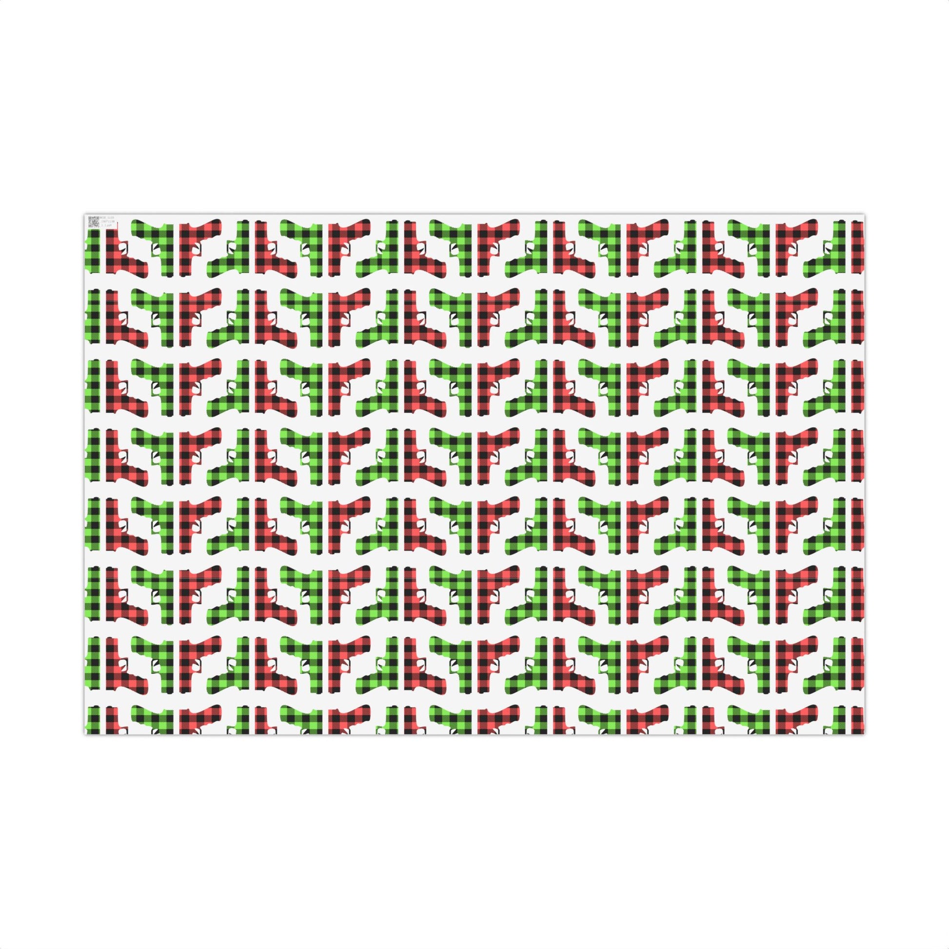 This unique gift wrap features a striking, bold handgun pattern creatively intertwined with a festive green and red buffalo plaid background pattern. The high-definition print ensures the intricate design and deep colors stand out perfectly. Because your wrapping paper should be as bold as your carry. Deck the halls and defend the spirit.